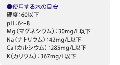 ミネラルウォーターには、含まれる硬度によって、硬水と軟水に大きく分けられます。硬度とは、水1リットルの中に溶け込んでいるカルシウムとマグネシウムの量を表した数値のこと。120mg/lを超えると硬水、120mg/l未満のものを軟水といいます。 赤ちゃん用ミルクは軟水で作ることとされています。過剰なミネラルは、腎機能の未熟な赤ちゃんには負担となるからです。使用する水のめやすは概ね以下のとおりとされています。